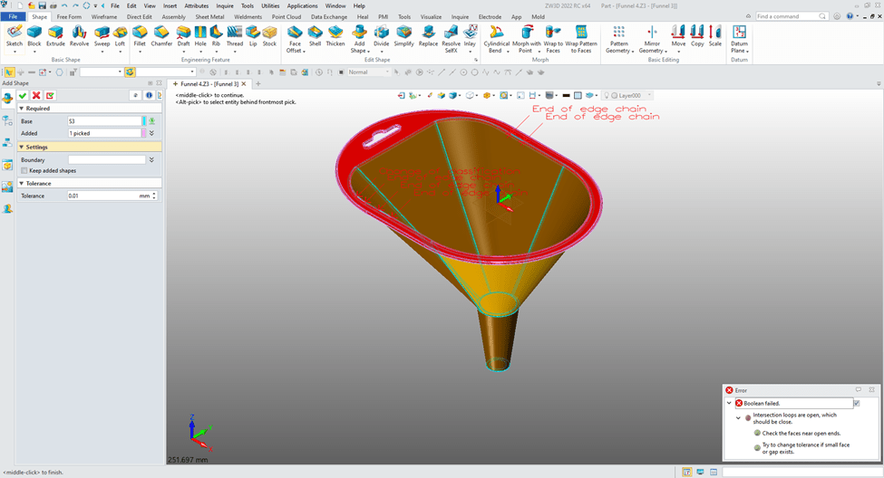Attached is a file where I’d like to use a Boolean operation to create all the faces and shapes into one model — like we do in IronCAD. How is this done in ZW? When I try to combine the faces and shapes. I get a mess where some of the faces/shapes are trimmed weird or just dropped altogether.