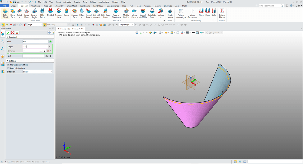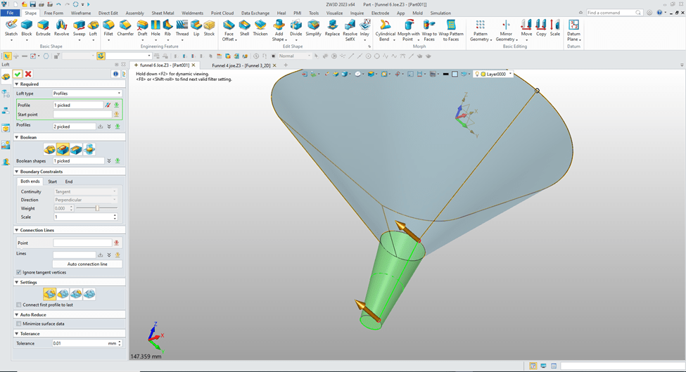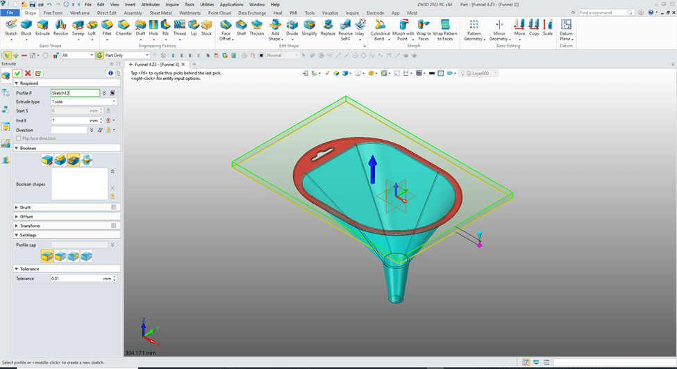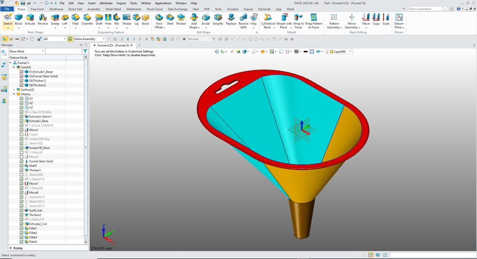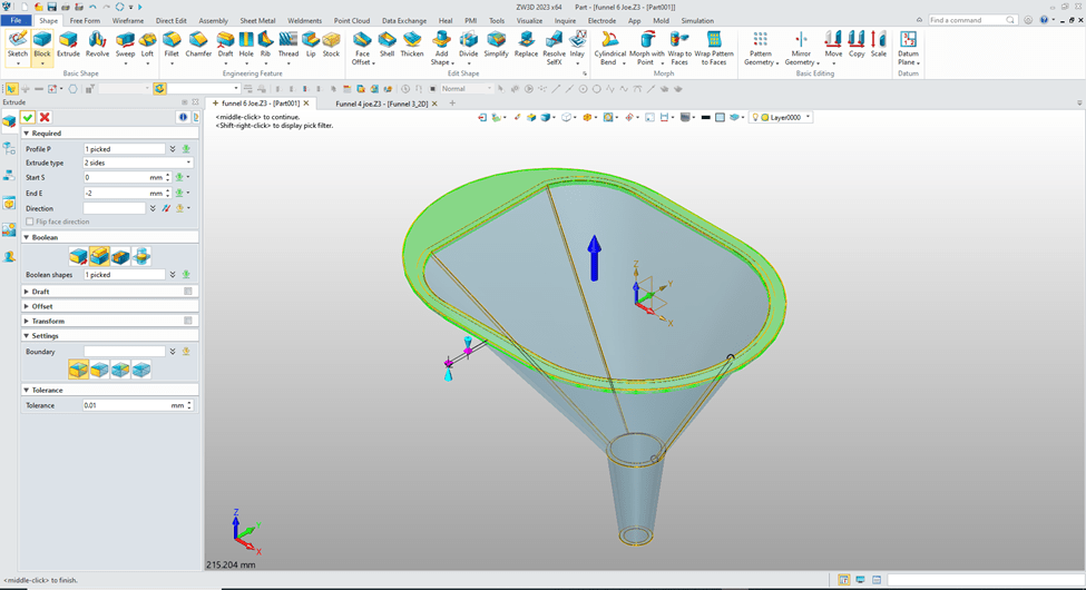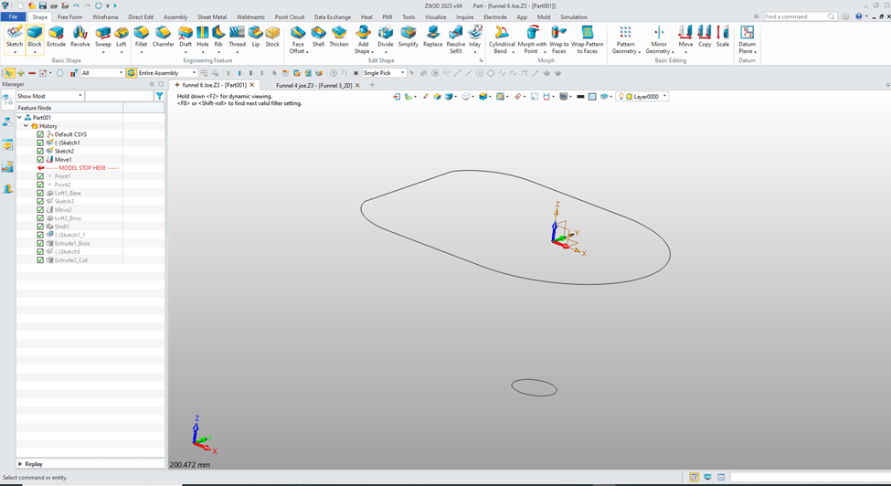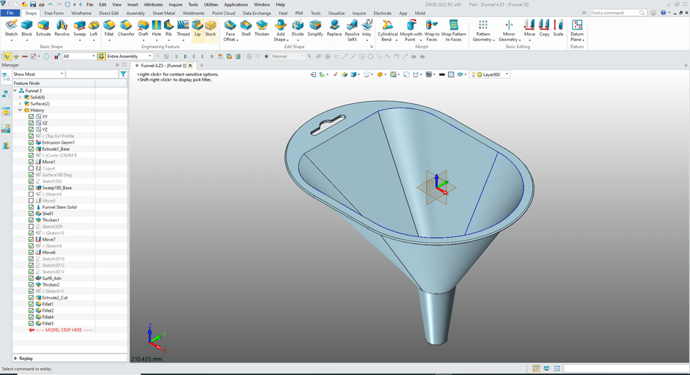 I decided with my knowledge of ZW3D starting with the funnel shape would be the most optimum way of creating part.