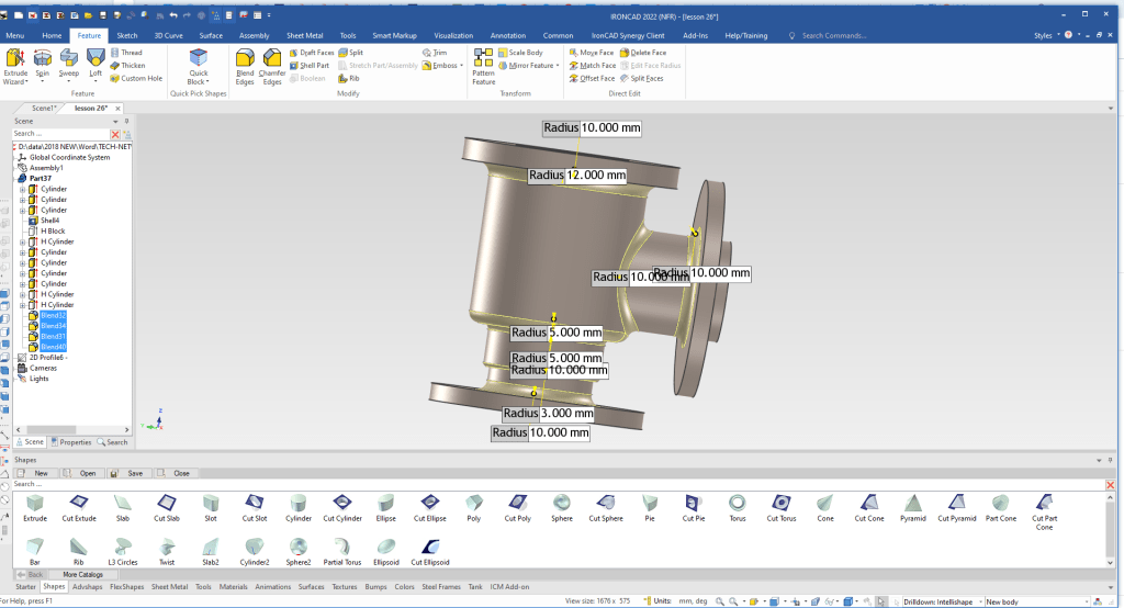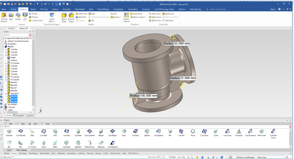 Using shapes eliminates the need to create a sketch and extrude or revolve. If you created each feature individually it is easier to modify directly. Imagine a complex part. Give this concept a try today.