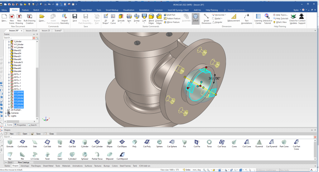 We now have to rotate them. We select all the holes and using the Triball we rotate them 30 degrees.