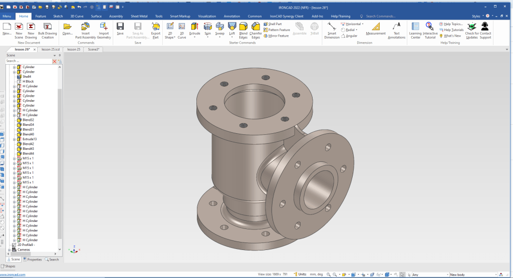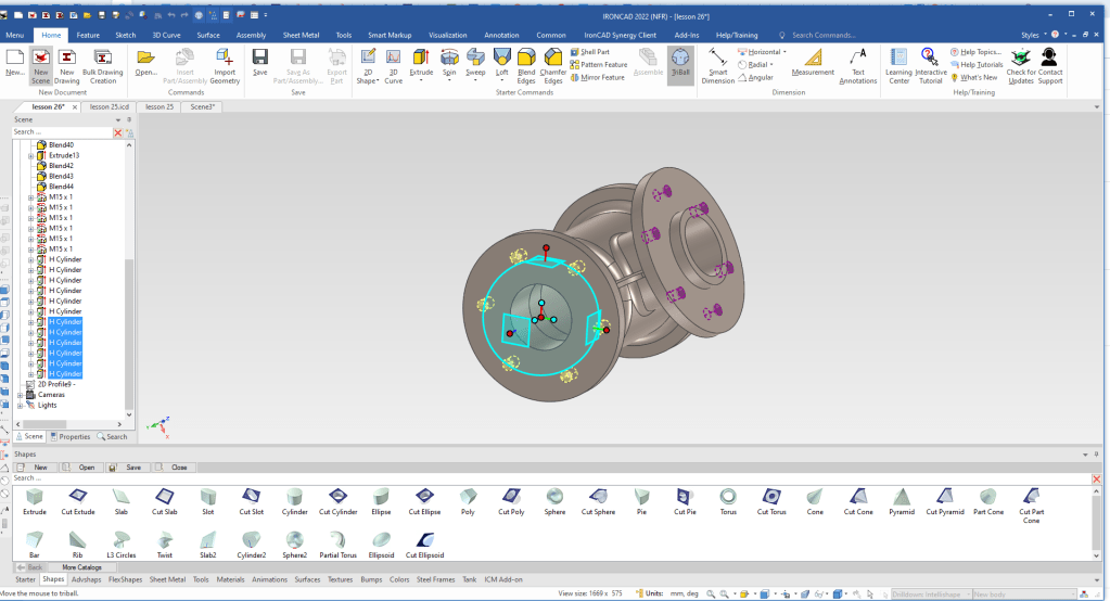 Note: Why does IronCAD call it a scene instead of a workspace? IronCAD was first released as a graphic design program called Trispectives. It still has much of the graphic design functionality. It truly is a wonderful mixture of professional 3D CAD and graphic design, which puts it in a much more flexible category as compared to the Pro/e (Creo) clones.