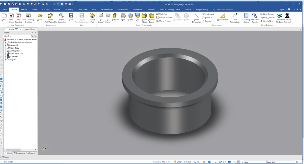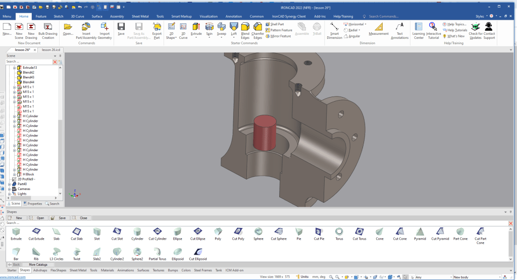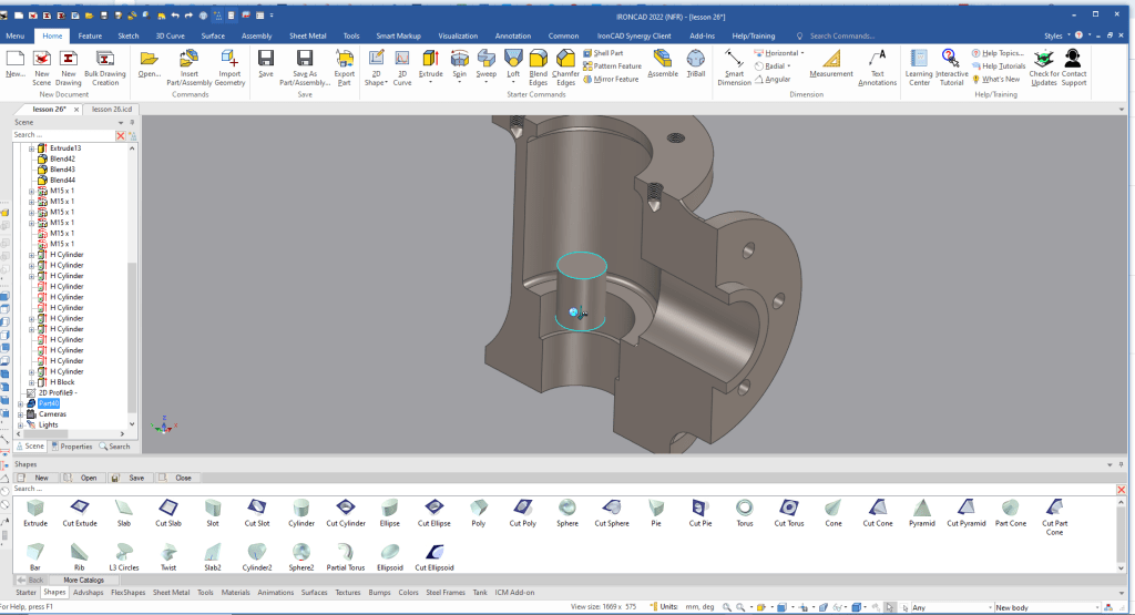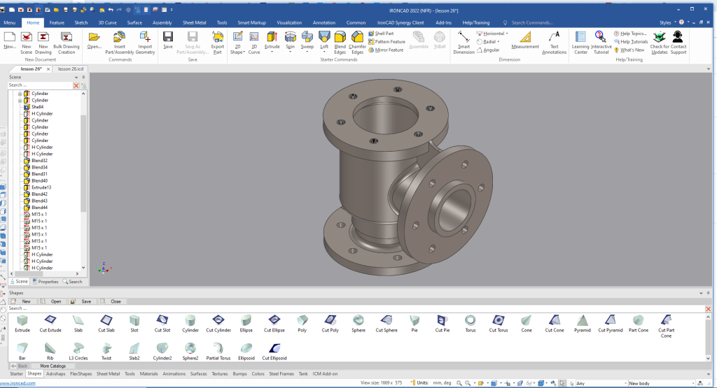 Note: Why does IronCAD call it a scene instead of a workspace? IronCAD was first released as a graphic design program called Trispectives. It still has much of the graphic design functionality. It truly is a wonderful mixture of professional 3D CAD and graphic design, which puts it in a much more flexible category as compared to the Pro/e (Creo) clones.