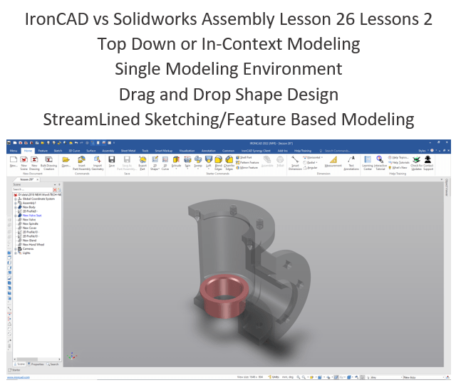 While creating 3D models from drawing is the very best way to learn 3D CAD and maybe some design techniques is does not expose the designer to the design flexibility necessary in product design. IronCAD is all top down due to the single model environment. Creating mating parts is a cruise. But modeling is just one aspect of this well designed productive 3D CAD system.