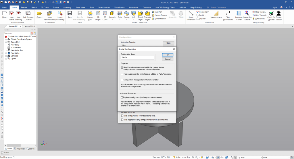 We don’t need the Valve to create the part so we suppress it in this configuration.