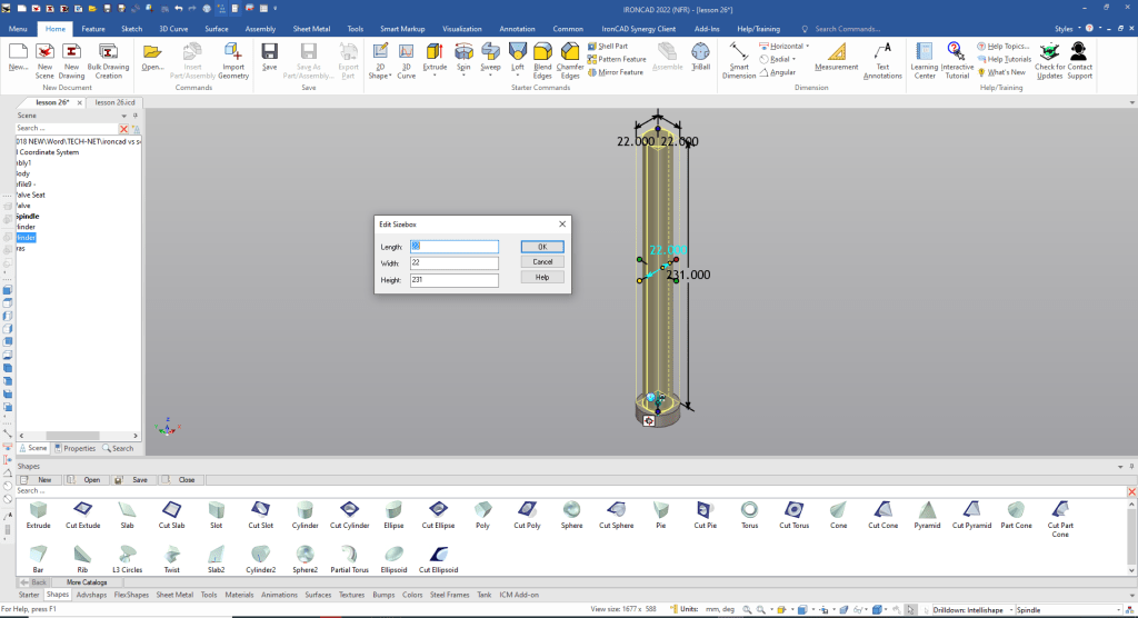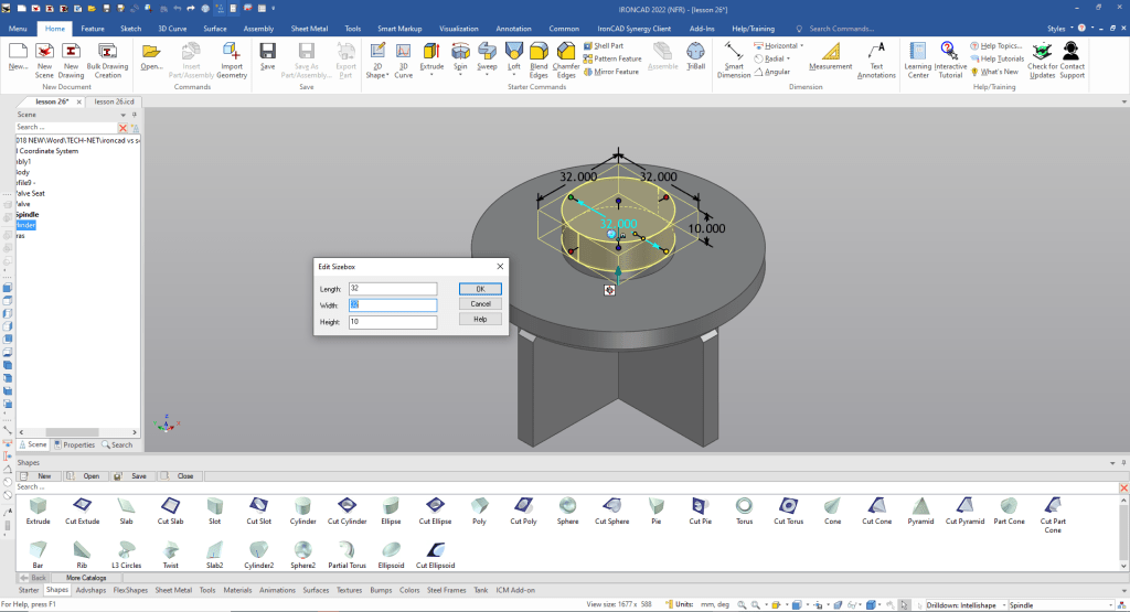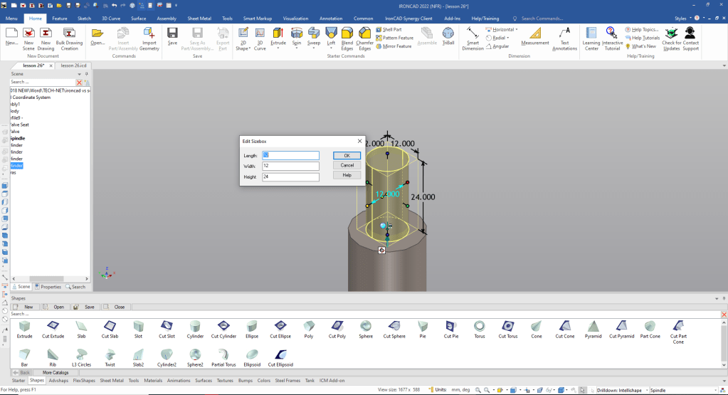 Note: Why does IronCAD call it a scene instead of a workspace? IronCAD was first released as a graphic design program called Trispectives. It still has much of the graphic design functionality. It truly is a wonderful mixture of professional 3D CAD and graphic design, which puts it in a much more flexible category as compared to the Pro/e (Creo) clones.