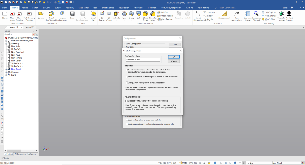 We will create a Gland configuration. This is how you manage parts in a single model environment.
