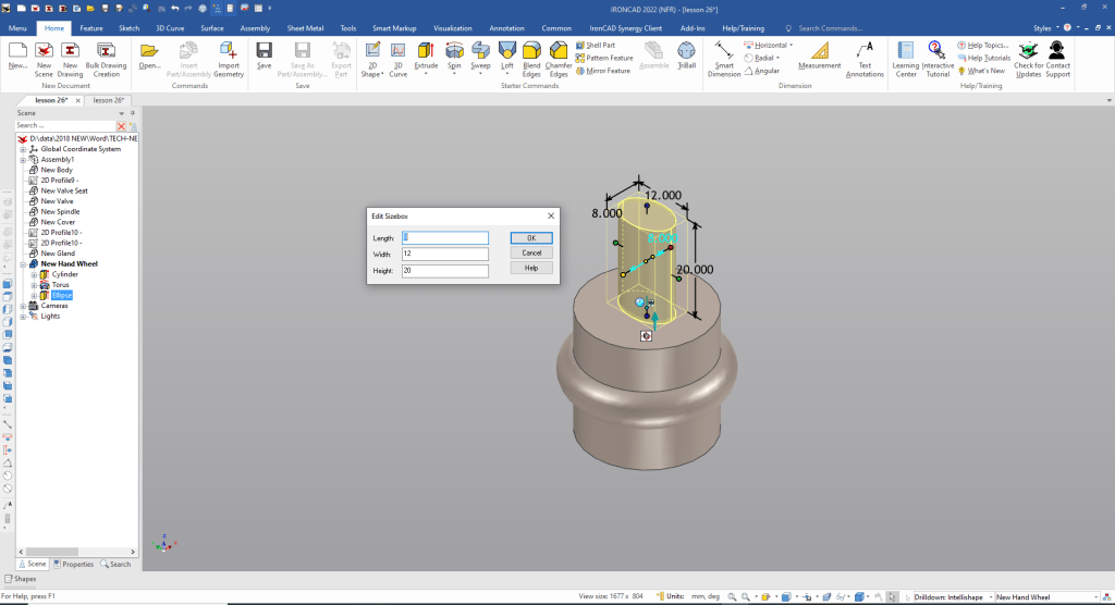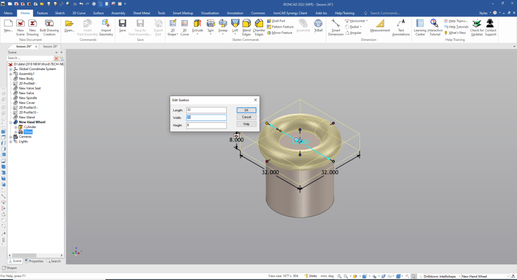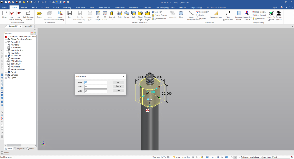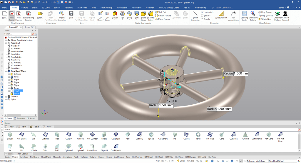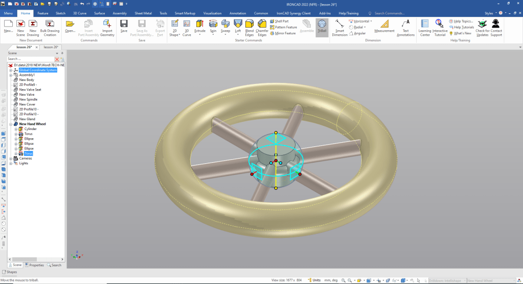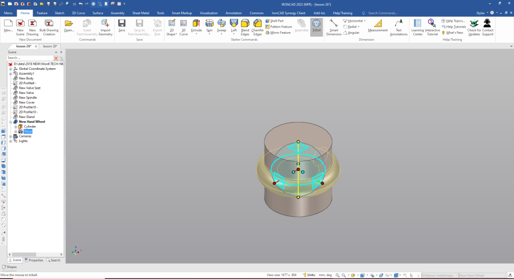 We open with the Spindle to use as a reference to create the Hand Wheel.