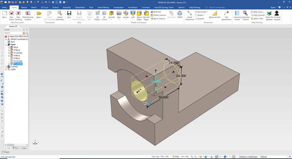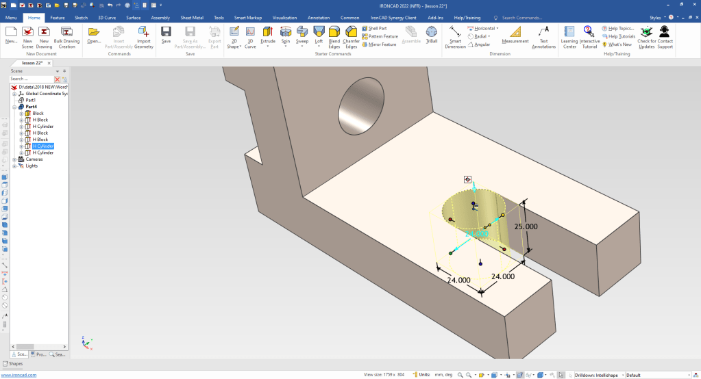 I saw the following video challenge on linkedin and thought I would give it a try. I actually did it before I watched the video, so I did it a bit differently. This will give you an idea how different and flexible IronCAD is compared to the conventional Solid Edge.