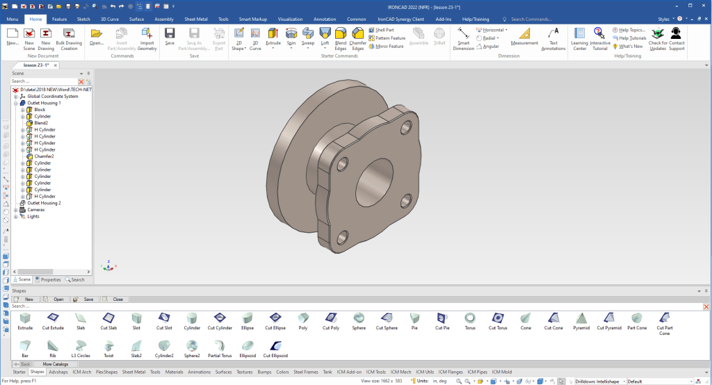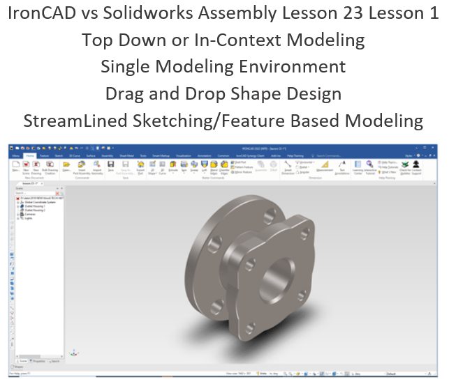 While creating 3D models from drawing is the very best way to learn 3D CAD and maybe some design techniques is does not expose the designer to the design flexibility necessary in product design. IronCAD is all top down due to the single model environment. Creating mating parts is a cruise. But modeling is just one aspect of this well designed productive 3D CAD system.
