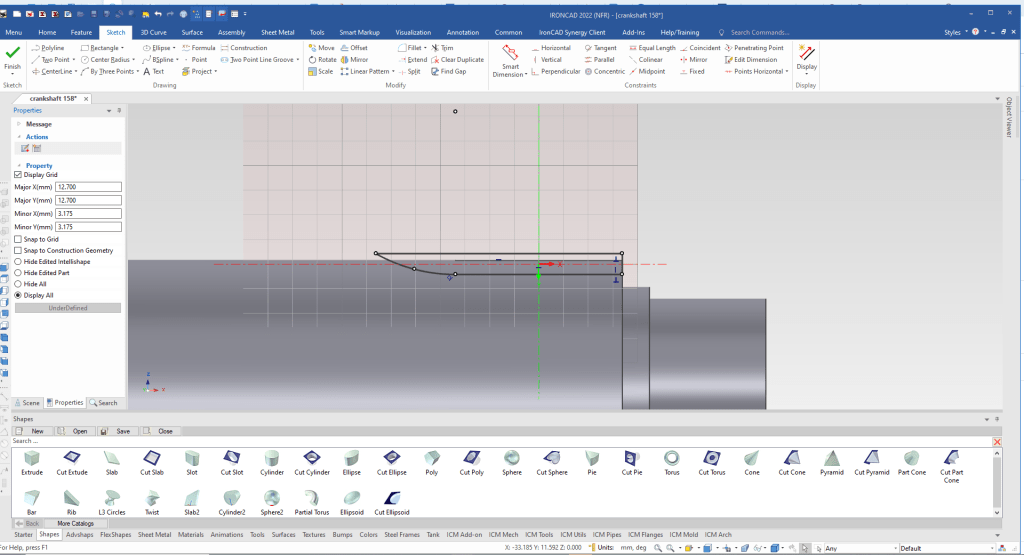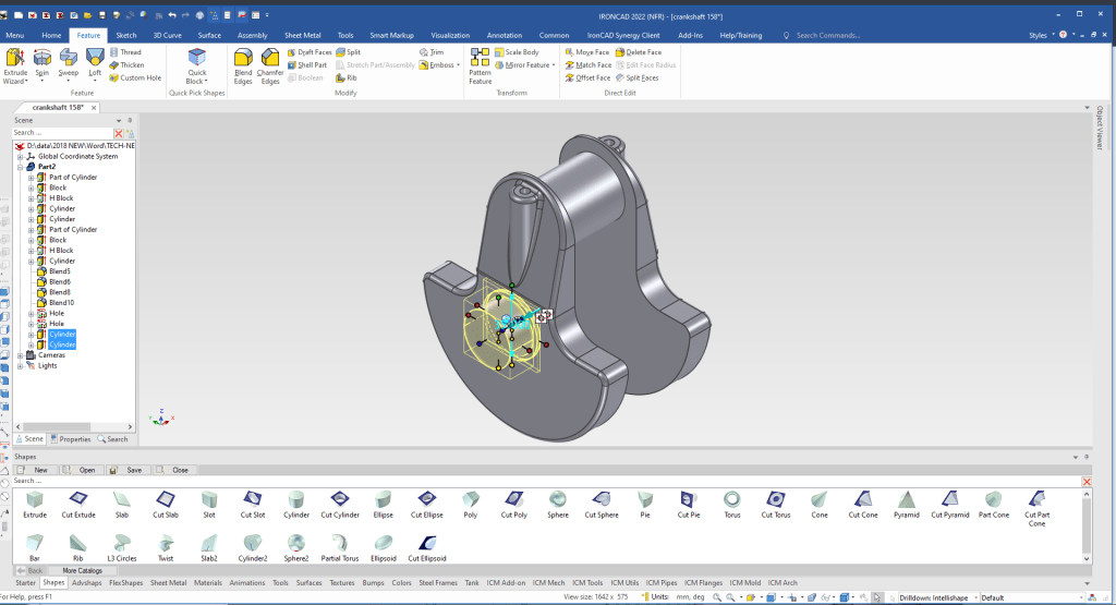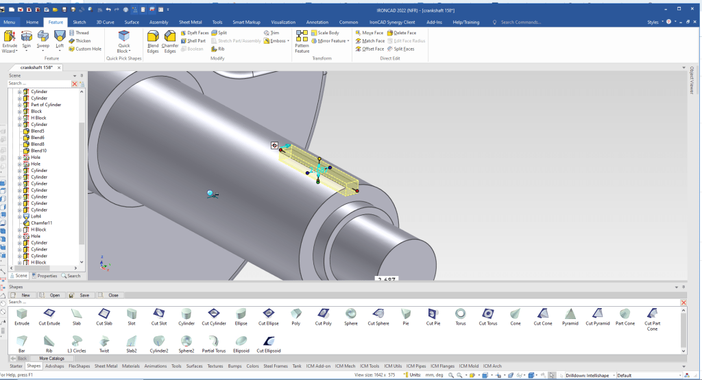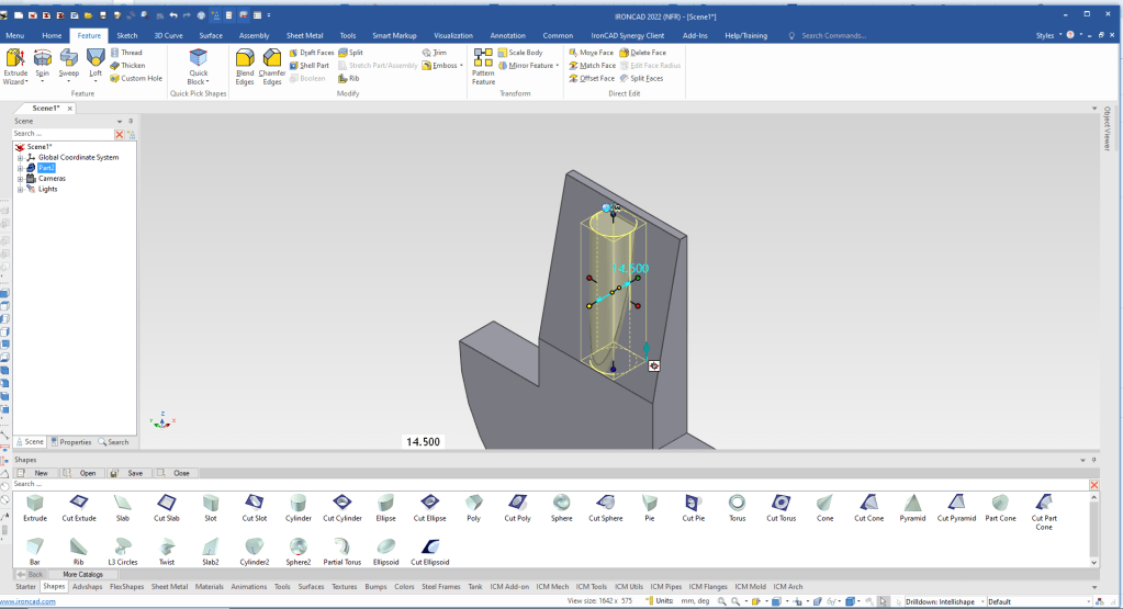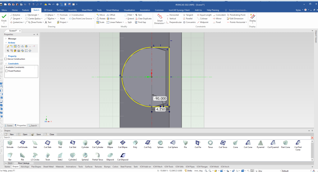 Using shapes eliminates the need to create a sketch and extrude. Sketches in IronCAD are an integrated part of the shape. You can have standalone sketches for use creating other features.