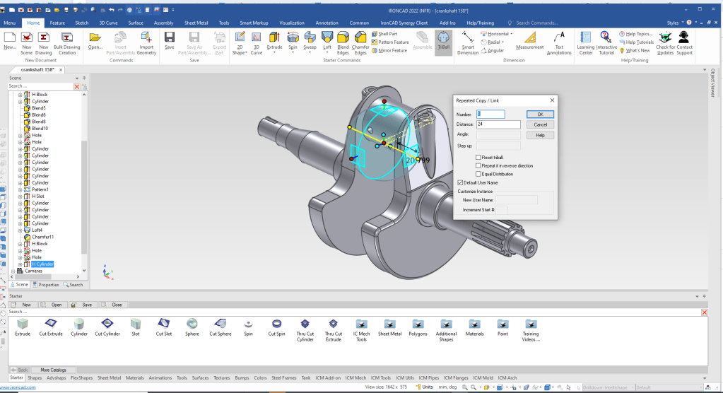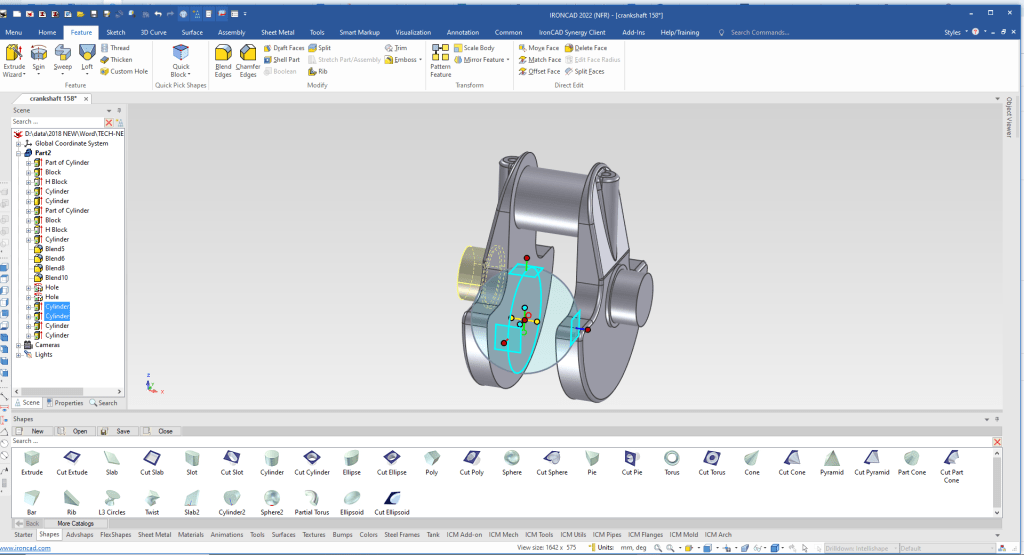 We are now done with the crank portion. We drag and drop the two cylinders, locate and size them.