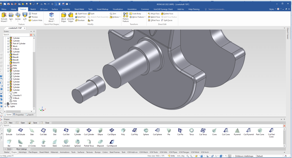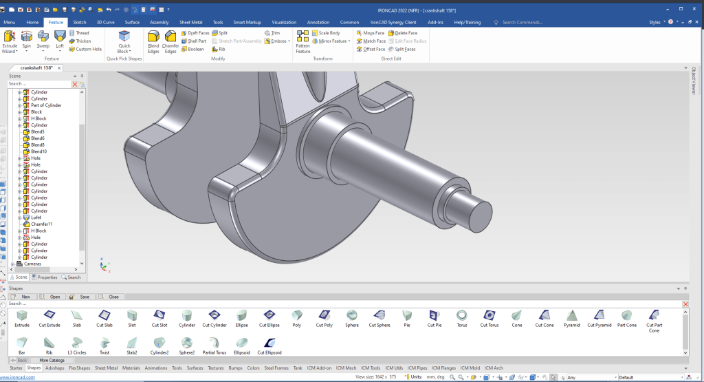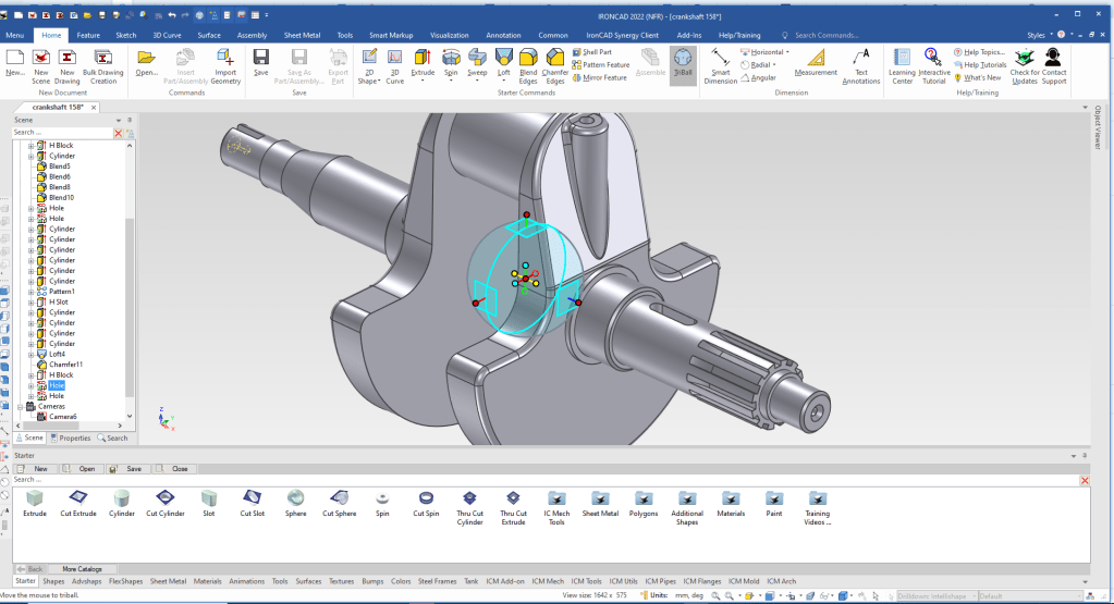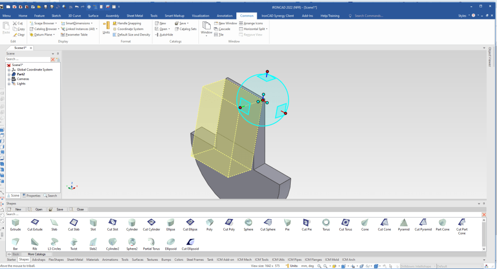 Note: Why does IronCAD call it a scene instead of a workspace? IronCAD was first released as a graphic design program called Trispectives. It still has much of the graphic design functionality. It truly is a wonderful mixture of professional 3D CAD and graphic design, which puts it in a much more flexible category as compared to the Pro/e (Creo) clones.