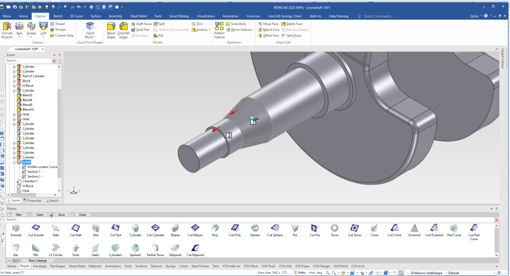 The Intellishape is based on sketches. We right click the Intellishape and select “Edit Cross section. This brings up a sketch and we do the appropriate changes. We orient the sketch if needed.