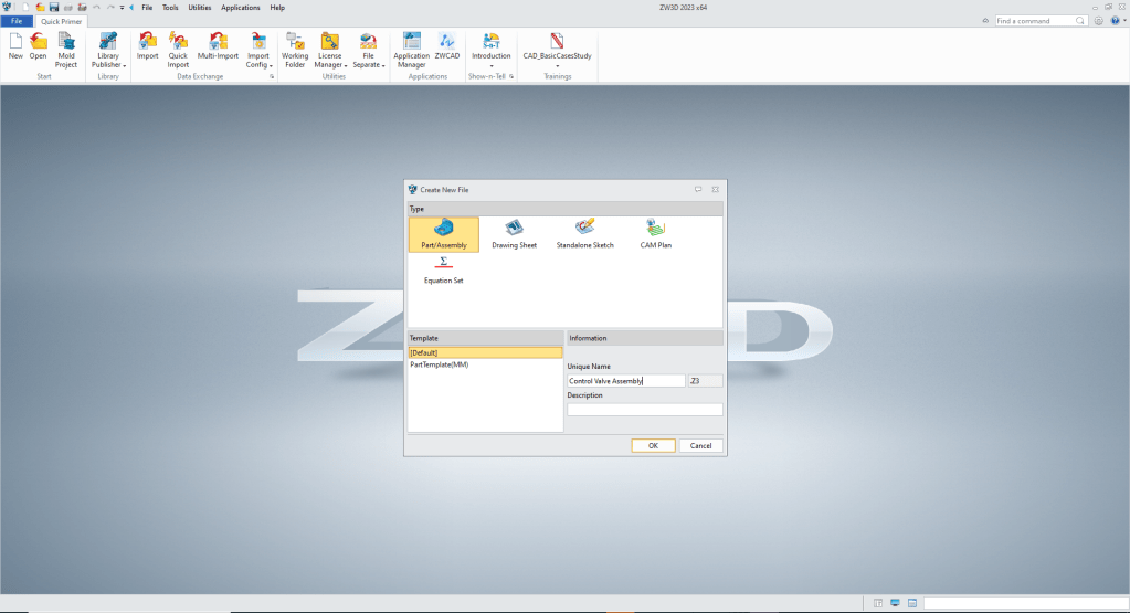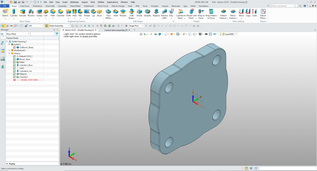 This is one of ZW3D most flexible features and should be made known. But ZW3D is focused on all of the popular program that have part, assembly and drawing files. If you prefer working that way ZW3D offers the option. But for his exercise we will work in the multi-object environment.