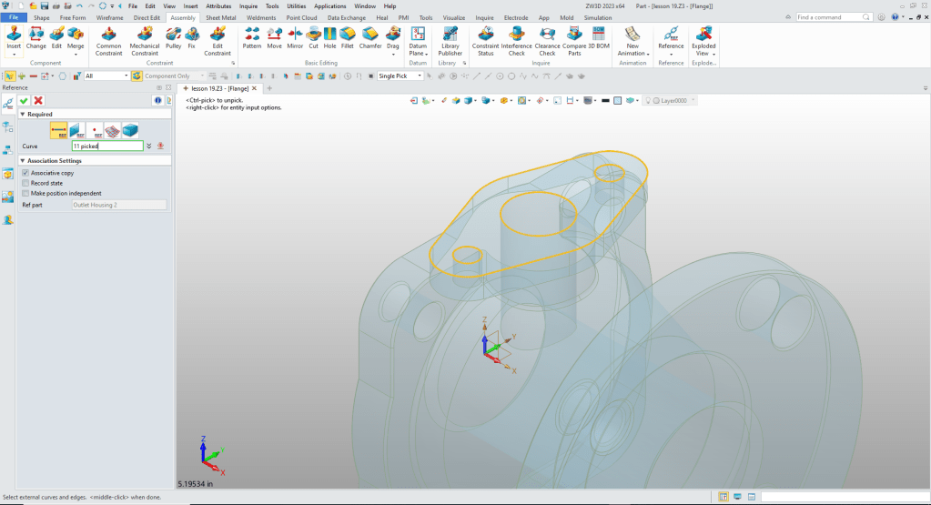 We use the “New to Insert” command under the the Control Valve Assembly and name the part Flange. We edit or activate the part. This how we design top down.