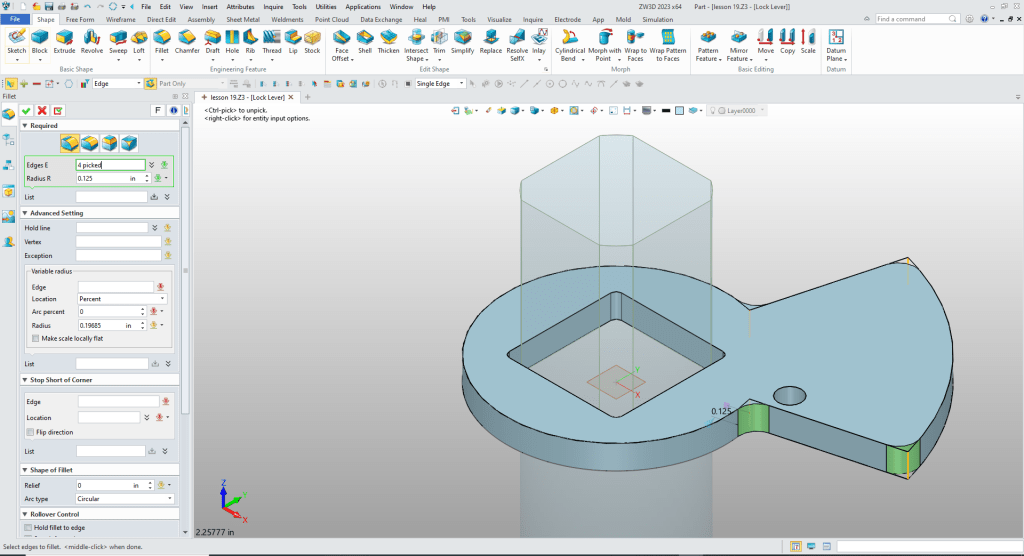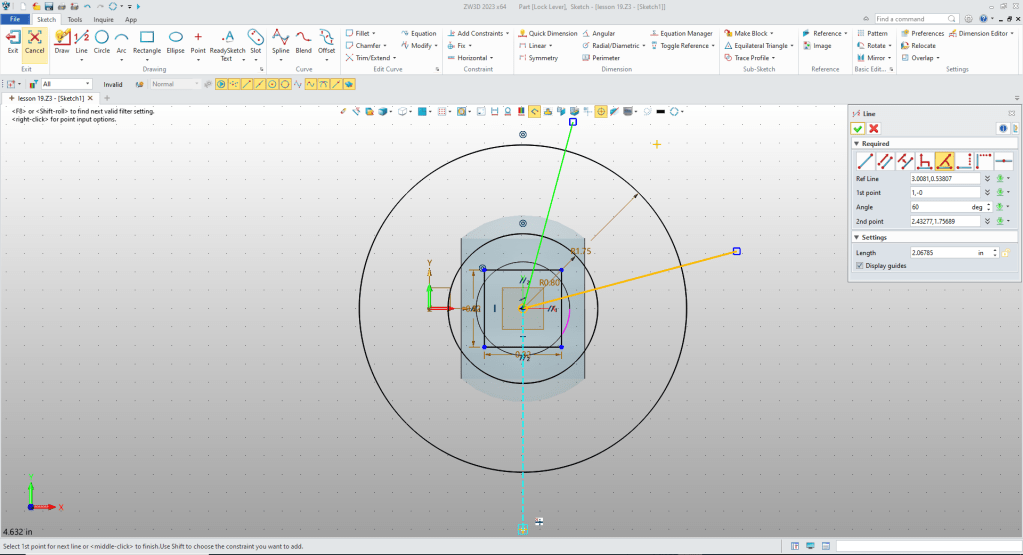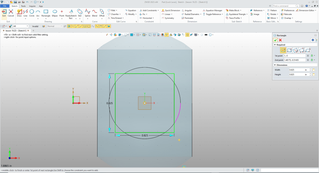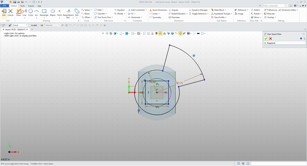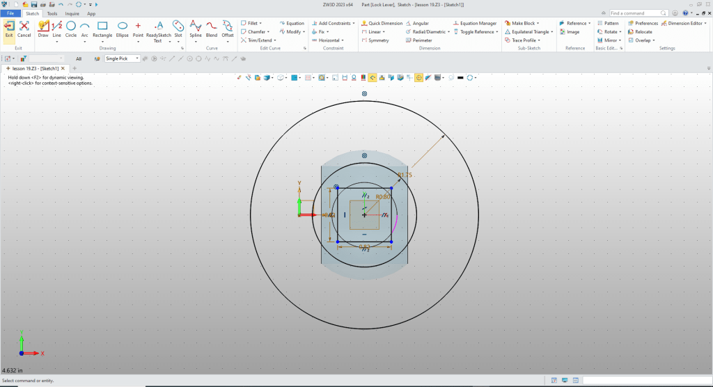 Now the last small hole. Notice I locate the hole within the command no dimensions.