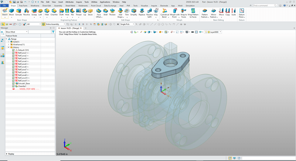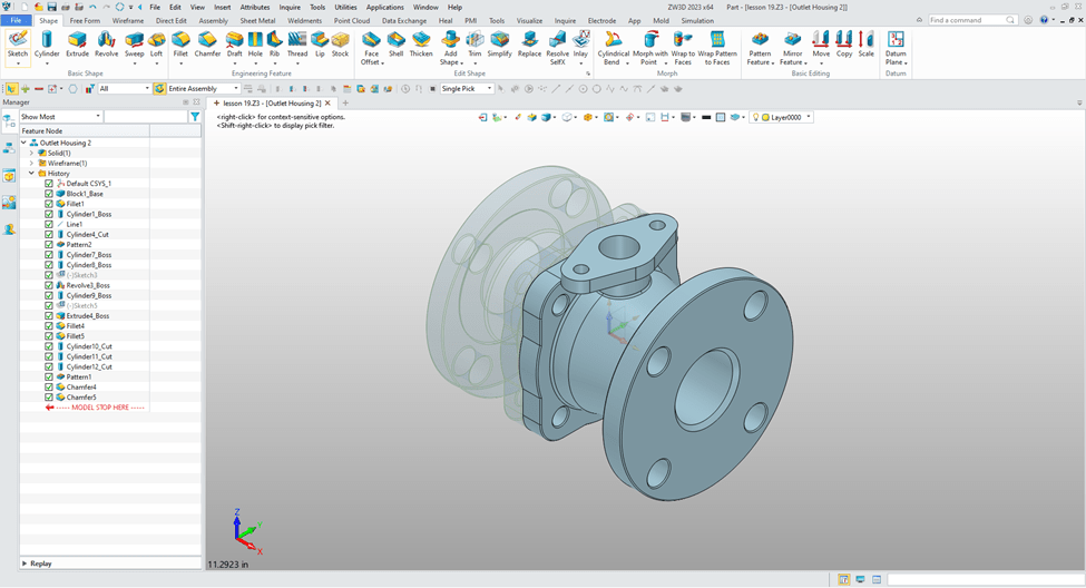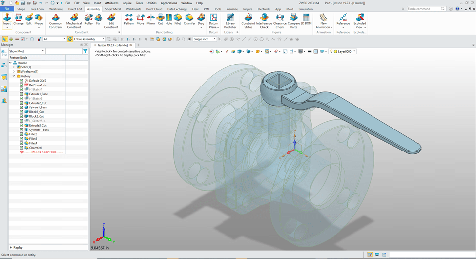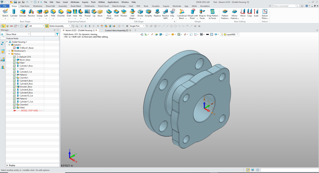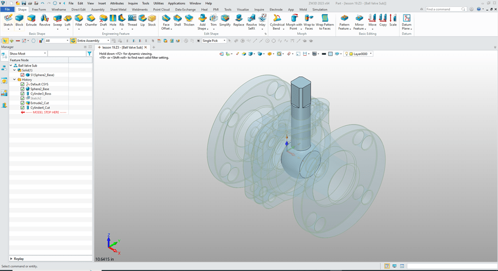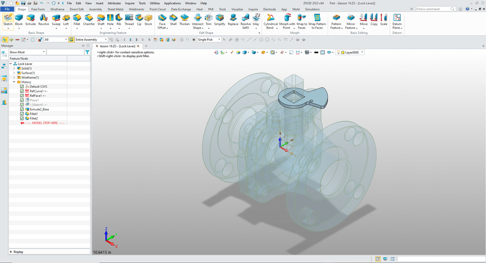 We are going to create this assembly in a few lessons. ZW3D is a Multi-Object environment where you design the assembly in one file, making top down or In-Context design your normal design process. The following models will show the unique drag and drop shape design and much more. Enjoy!
