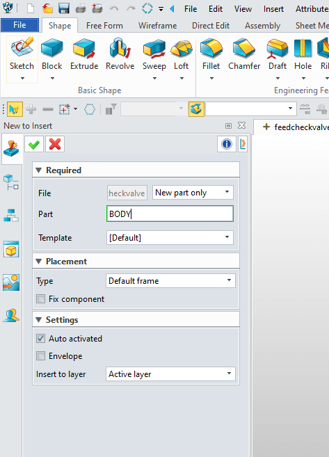 We will now select “New to Insert” and name the part “BODY”
