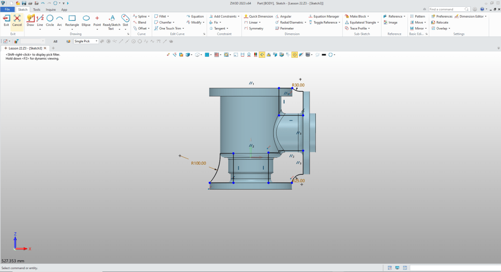 We now need to create some fillets. I inserted block sized and set to remove so we can see the state of the model.