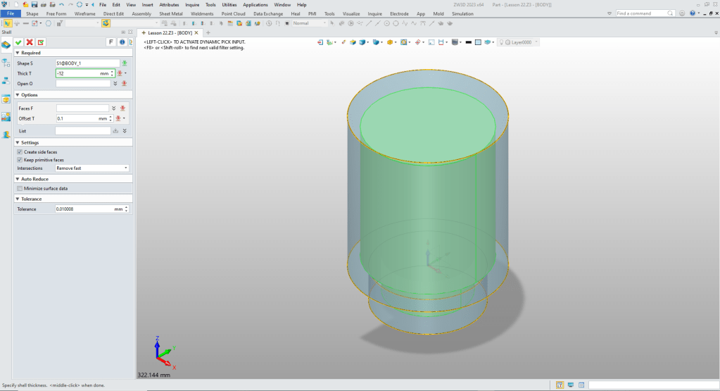We did a design intent evaluation and realized this shape could be shelled.