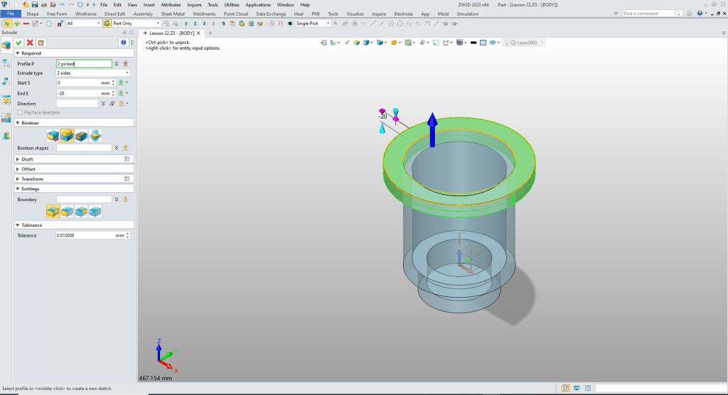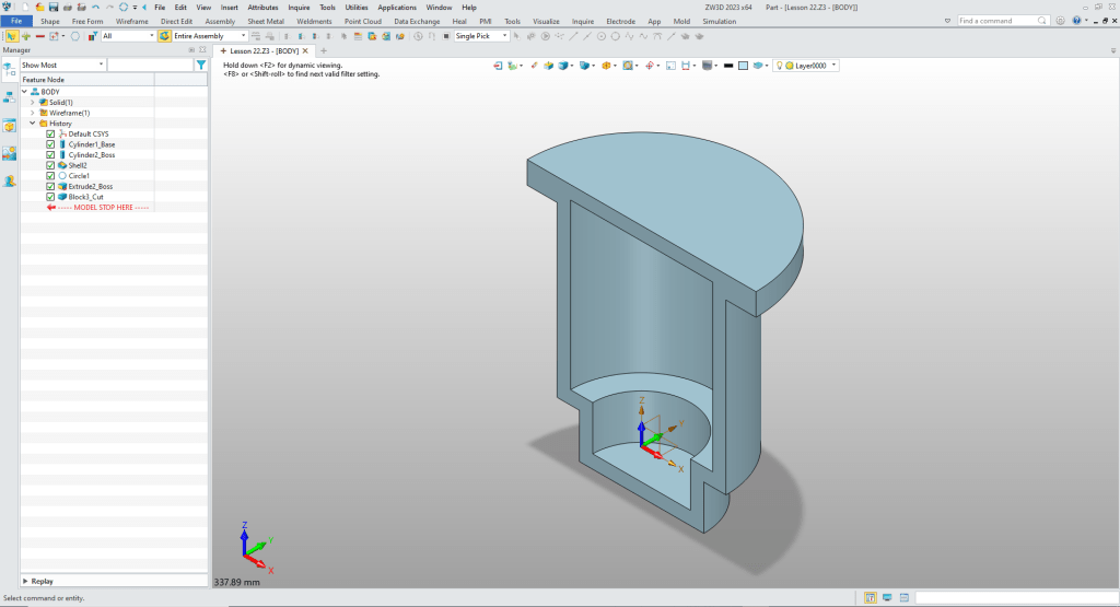 This is one of ZW3D most flexible features and should be made known. But ZW3D is focused on all of the popular program that have part, assembly and drawing files. If you prefer working that way ZW3D offers the option. But for his exercise we will work in the multi-object environment.