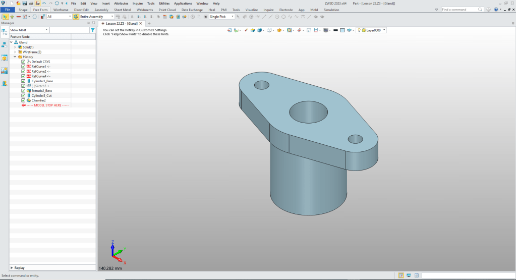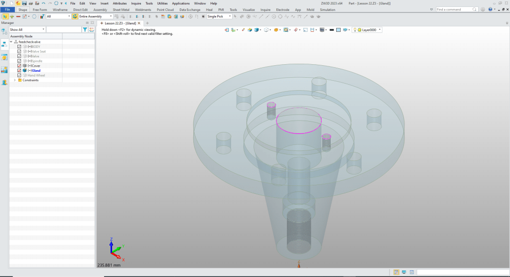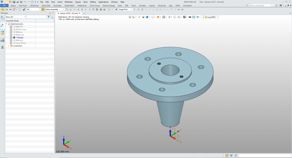 We are doing effective top down or in-context design. This is an option in the ZW3D design process. We open the assembly and show the “Cover” since we will be using it for a reference location in our top down. We select the assembly mode.