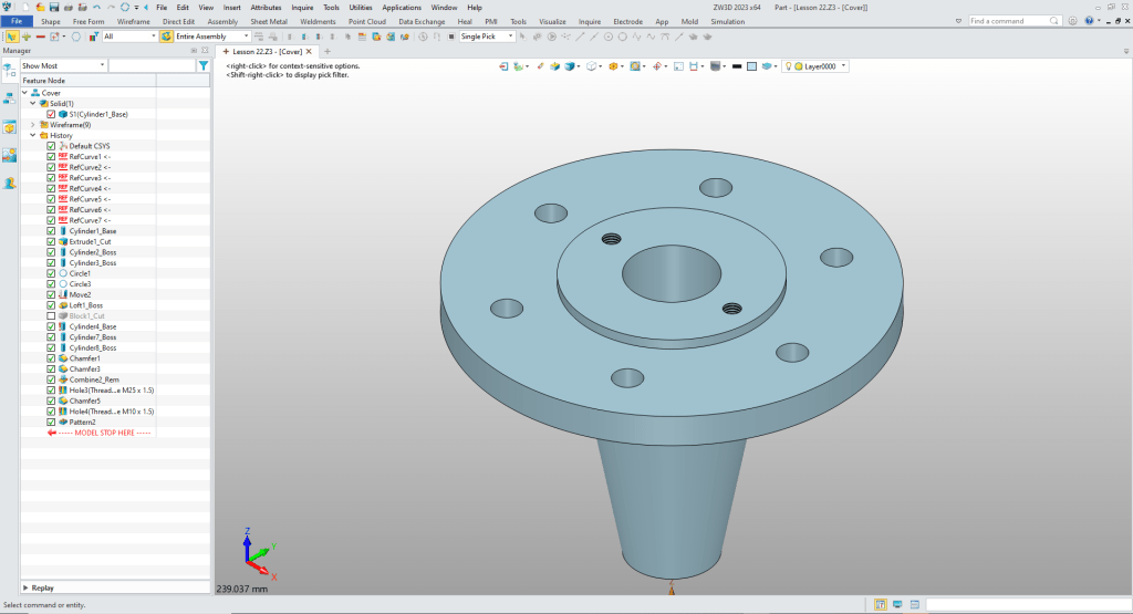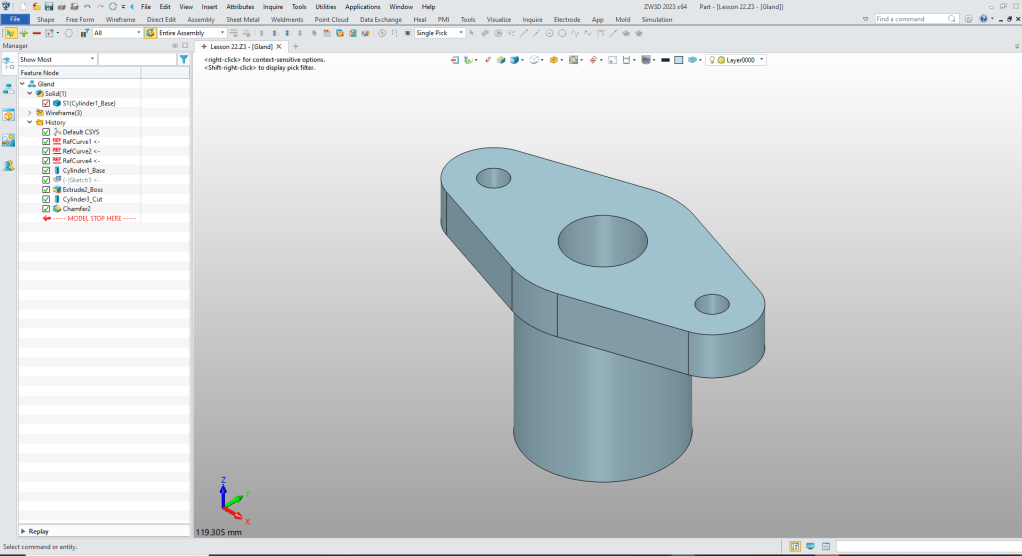 We are going to create this assembly in a few lessons. ZW3D is a Multi-Object environment where you design the assembly in one file, making top down or In-Context design your normal design process. The following models will show the unique drag and drop shape design and much more. Enjoy!