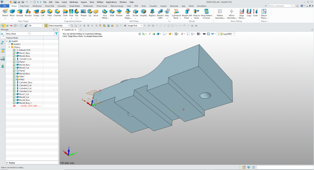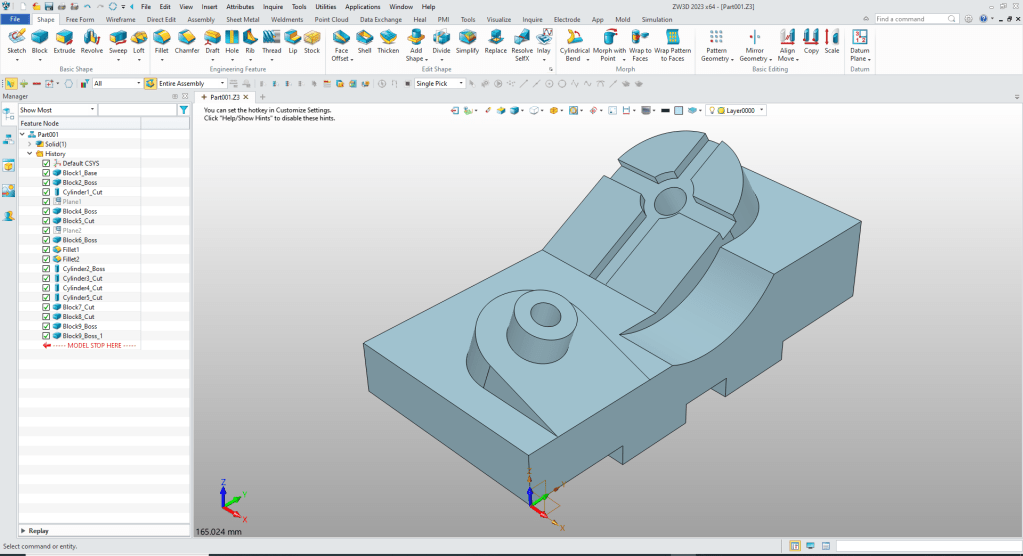 I saw the following video challenge on linkedin and thought I would give it a try. I actually did it before I watched the video, so I did it a bit differently. This will give you an idea how different and flexible ZW3D is compared to the conventional Solidworks