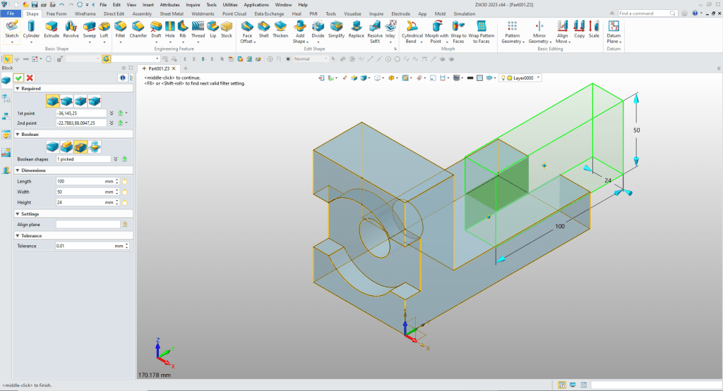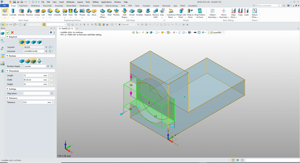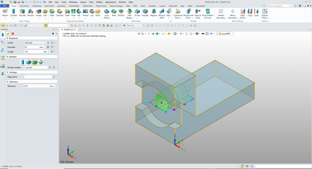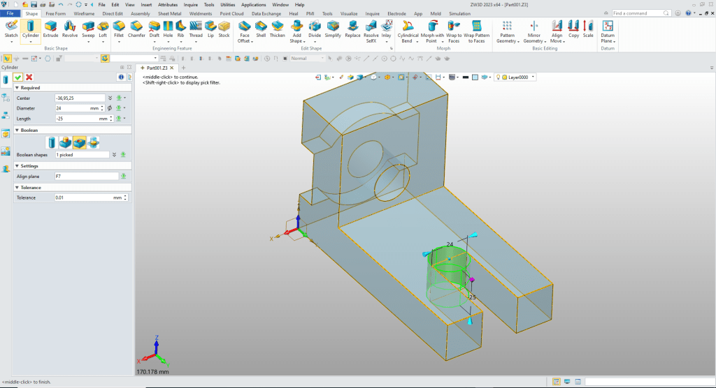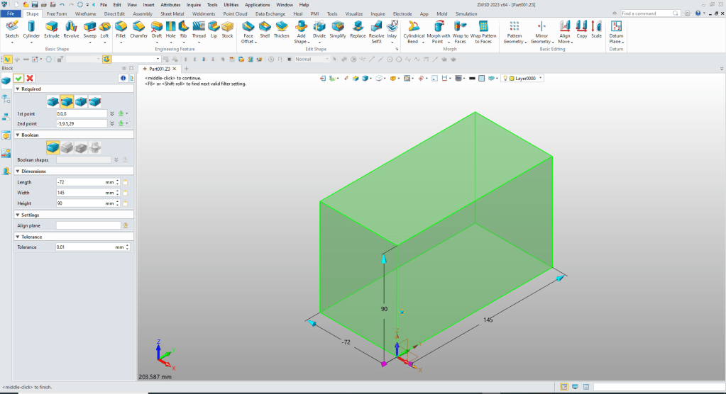 ZW3D is a sketch based system so it is easy for the major CAD system users to get up to speed fast. But it also has Primitive Shapes available that can eliminate the need to sketch and extrude in many cases.