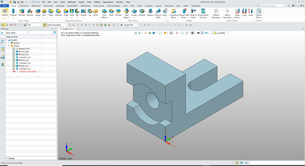 I saw the following video challenge on linkedin and thought I would give it a try. I actually did it before I watched the video, so I did it a bit differently. This will give you an idea how different and flexible ZW3D is compared to the conventional Solid Edge.
