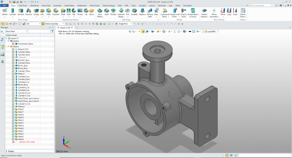 I saw the following video challenge on linkedin and thought I would give it a try. I actually did it before I watched the video, so I did it a bit differently. This will give you an idea how different and flexible ZW3D is compared to the conventional Solidworks